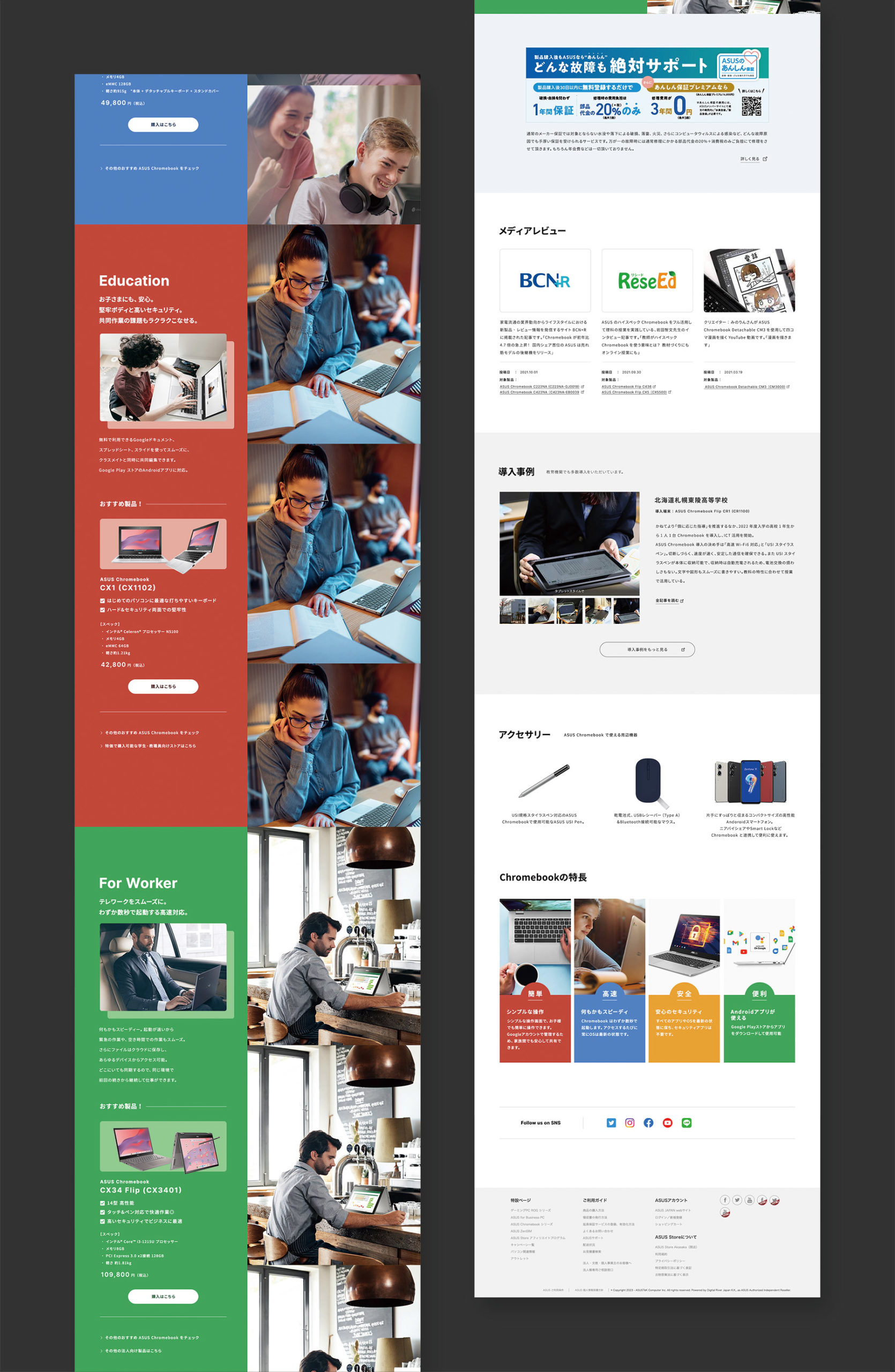 ASUS Chromebook ClientASUS Chromebook Year2023.8 URLClosed My RoleDirection / Design Description台湾を拠点とするコンピューターおよび電子機器メーカーであるASUSのChromebookプロモーションサイト(LP)の制作を担当しました。膨大な情報1ページで掲載しなければならないため、いかに見やすく使いやすいページにできるかを意識したUI・導線設計を行いました。 Share: Twitter Facebook Google+ ASUS, Chromebook, LP, プロモーションサイト